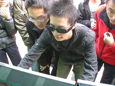 白天的活动首当其冲的便是英伟达公司为同学们带来的3DVision技术的现场展示,通过这一技术,同学们可以轻易地在个人电脑的平台上实现以往只能在电影院等专业地点观看的3D效果。而负责现场活动的我院学生会的同学们更是在一旁尽心尽力地为来参观的同学们解说相关的技术原理,让同学们能够“理实交融”地学习到有关计算机知识。
