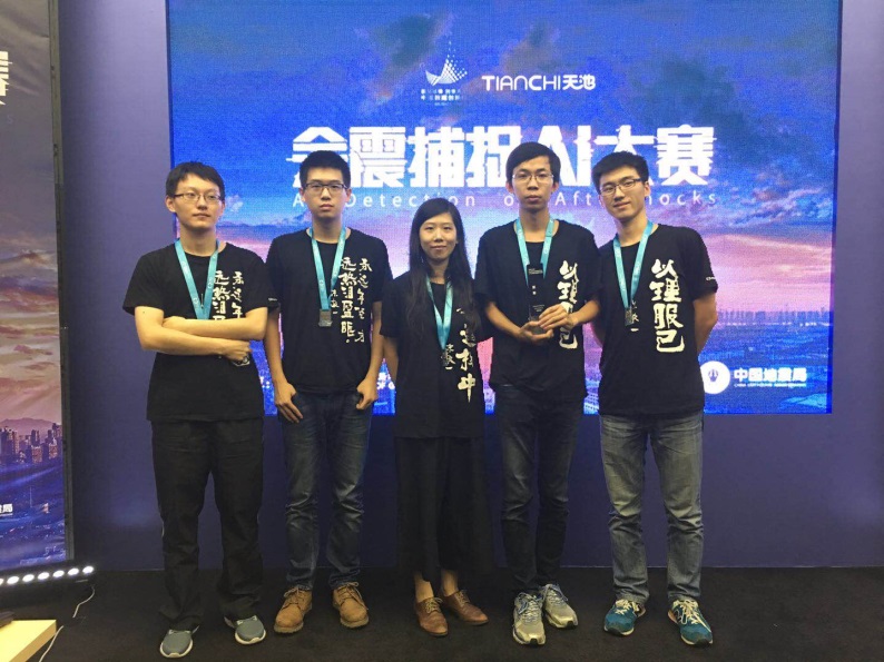 EarthBrain团队5名参赛队员中的4位研究生张琦、申大忠、周培伦、殷子凯,均来自我院大数据分析与应用实验室。同时,团队邀请了我校0511校友、中国地震台网中心《震灾防御技术》编辑赵雯佳加盟。实验室负责人陈恩红教授与“大师讲席”熊辉教授担任团队顾问,实验室毕业生祝恒书博士(现为百度资深科学家)与徐童博士(现为我校我院博士后研究员)为指导教师。