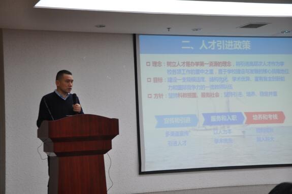 人力资源部黄方部长在大会开始介绍了中国科学技术大学的师资队伍建设情况、人才引进政策和人才引进项目。他表示学校发展六十年,已迈入全新阶段。学校全面参与合肥综合性国家科学中心建设,在合肥申报和建设量子信息国家实验室,启动建设中国科大高新园区,成立生命科学与医学部,建设以信息、计算机、软件、微电子、网络空间安全和大数据学院等单位为主体的人工智能与大数据学部。最后,他从科研、教育、生活等方面介绍了学校环境、合肥市的迅速发展,热诚欢迎海内外优秀人才加盟中国科大!