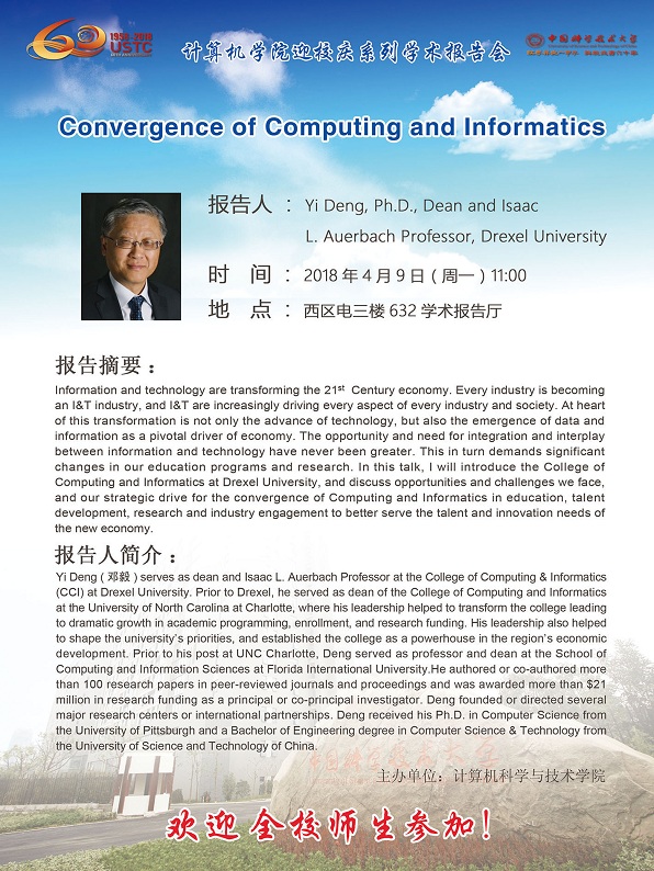 美国德雷塞尔大学计算机与信息学院院长邓毅教授学术报告会