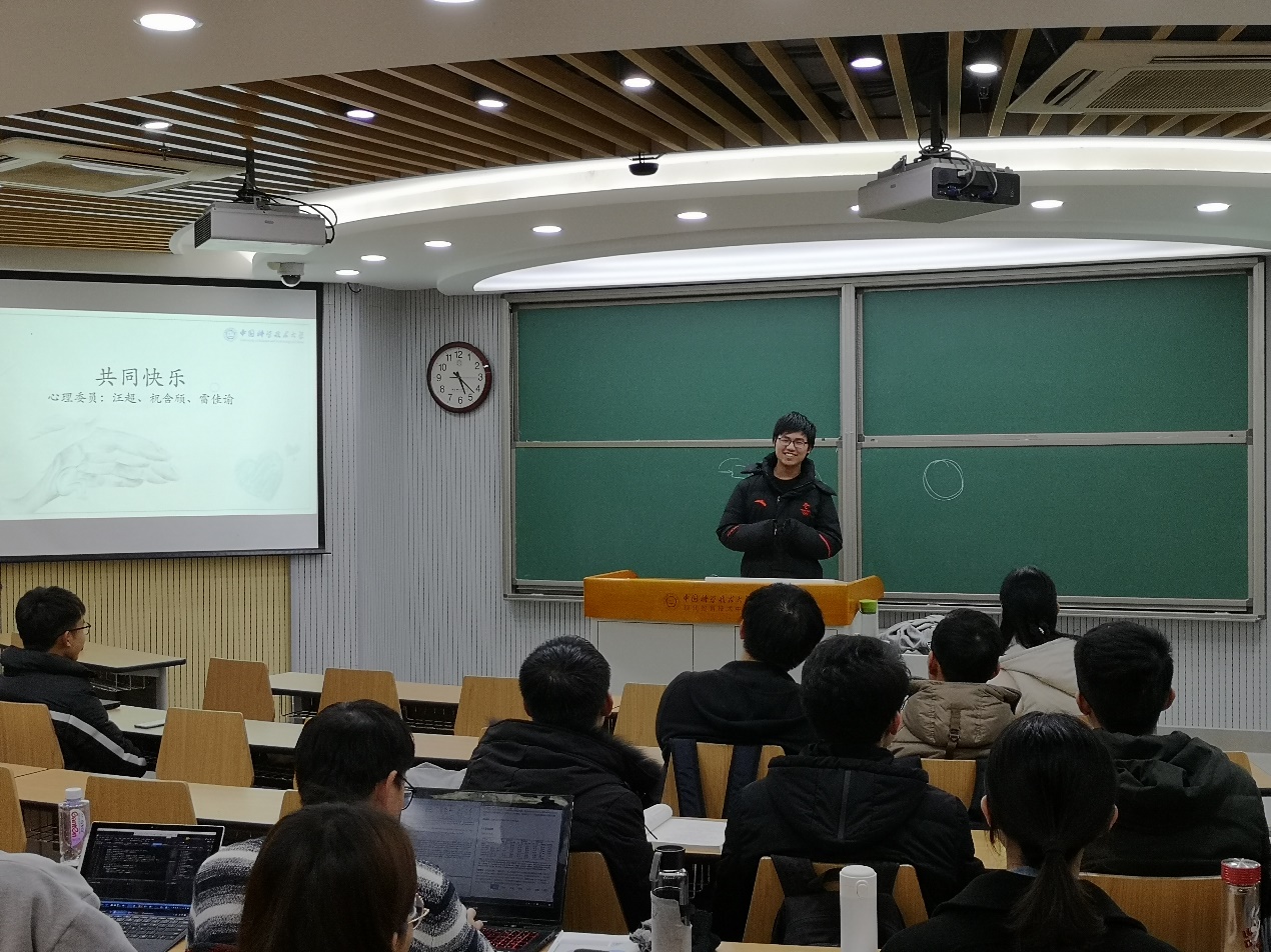班主任陈凯明老师高兴地指出,一学期过去,大家已经适应了科大的生活,也在交流中逐渐熟识,融入班级大集体。他肯定了班级同学本学期表现和班委工作,希望新的一年大家共同努力,取得更大的进步。