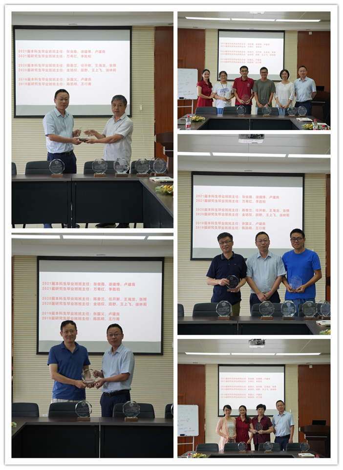 徐宏力为近三年毕业班的班主任颁发了致谢礼并分别合影留念。致谢礼为镶嵌学校校徽的水晶摆件,清朗透明的摆件寓意着学院学生工作者拥有的澄澈明朗的胸怀,关爱学生的一片赤诚之心,也承载了对老师们真诚的感谢和深深的祝福。