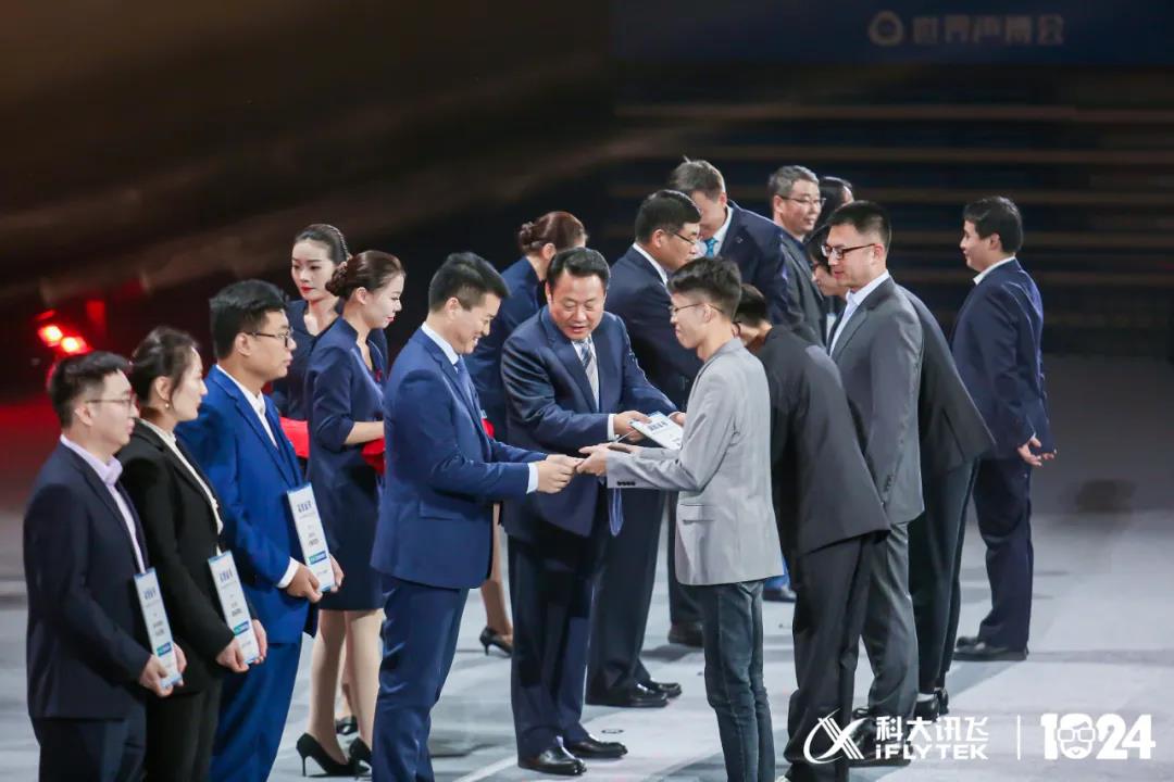 1025日上午,以“AI共生·新征程”为主题的第四届世界声博会暨2021科大讯飞全球1024开发者节在合肥隆重开幕,安徽省省长王清宪发表了主题演讲。会上举行了“2021世界声博会十大人工智能新锐团队”颁奖仪式,中共安徽省委常委合肥市委书记虞爱华、安徽省人民政府副省长何树山、安徽省人民政府副省长张红文、中国科学技术大学党委书记舒歌群共同出席,为十大获奖团队颁奖。中国科学技术大学鸿雁队凭借在“科大讯飞AI开发者大赛”有史以来获奖最多的突出表现,成为获此殊荣的两支高校学生团队之一。
