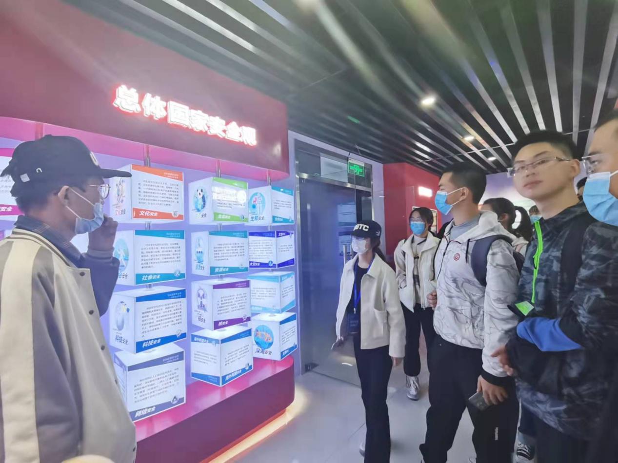 在消防安全教育展示区,同学们在讲解员的带领下,观看了火灾逃生绳降演示,接受了结绳训练和楼道逃生训练,参与了模拟灭火,学习了拨打报警电话的注意事项和消防逃生知识。在国家安全教育展示区,同学们在讲解员的带领下,学习了总体国家安全观,了解了保卫国家安全的相关高精尖武器,观看了高校国家安全警示案例短片。