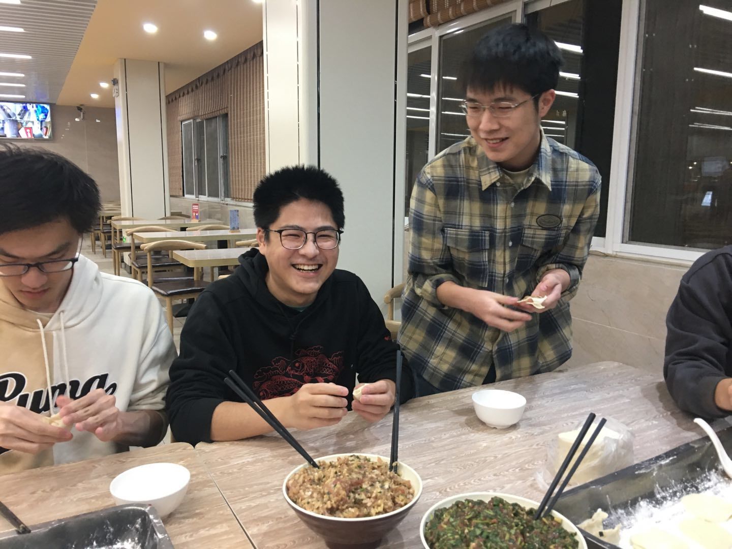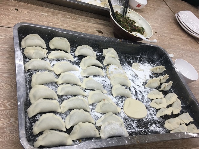 活动开始前,在班级中进行了投票选出了猪肉莲藕、牛肉香菜、韭菜鸡蛋三种馅料,并且由食堂工作人员准备了饺子皮、馅、面粉和碗筷。有经验的同学手指纷飞,轻柔慢捻之间一个个馅料饱满,褶子美观的饺子跃然盘内;没有经验的同学照猫画虎,虽然把握不住皮和馅的比例,但在其他同学的帮助下,倒也是创造出了一些饺子的包法,可谓八仙过海,各显神通。