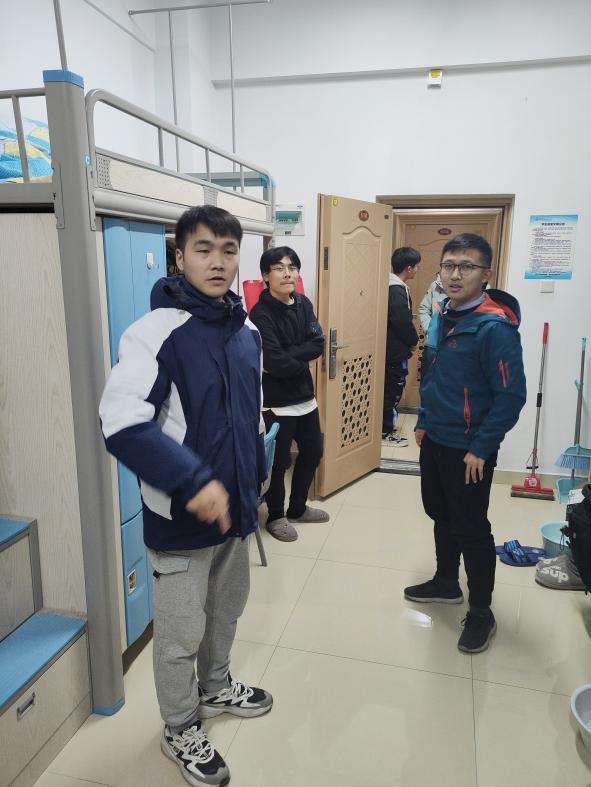陈海超走访男生宿舍,深入学生之中,在指导学生注意宿舍卫生基础上,强调宿舍假期安全工作的重要性,要求学生离校之前做好宿舍水电暖安全措施,注意宿舍消防安全,留校学生在严格遵守疫情防控措施基础上,做好宿舍安全卫生,营造一个良好的生活环境。