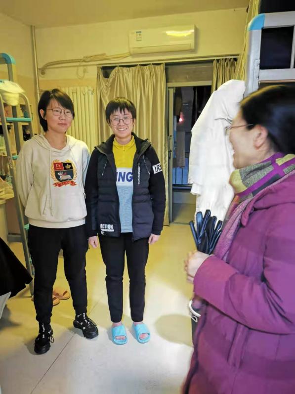 薛妍妍走访女生宿舍,细致检查每个宿舍,与同学们深入交流,提醒学生注意假期安全,在做好宿舍管理的基础上,愉快地度过寒假,为之后的学习生活打好基础。