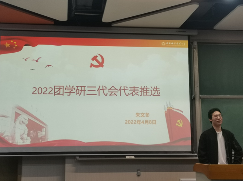 7点45分,进行参会代表推选。王岩开同学获得学生代表名额。团代表名额在朱文冬同学和徐昊同学中选举产生,经由团员投票,最终朱文冬同学获选。
