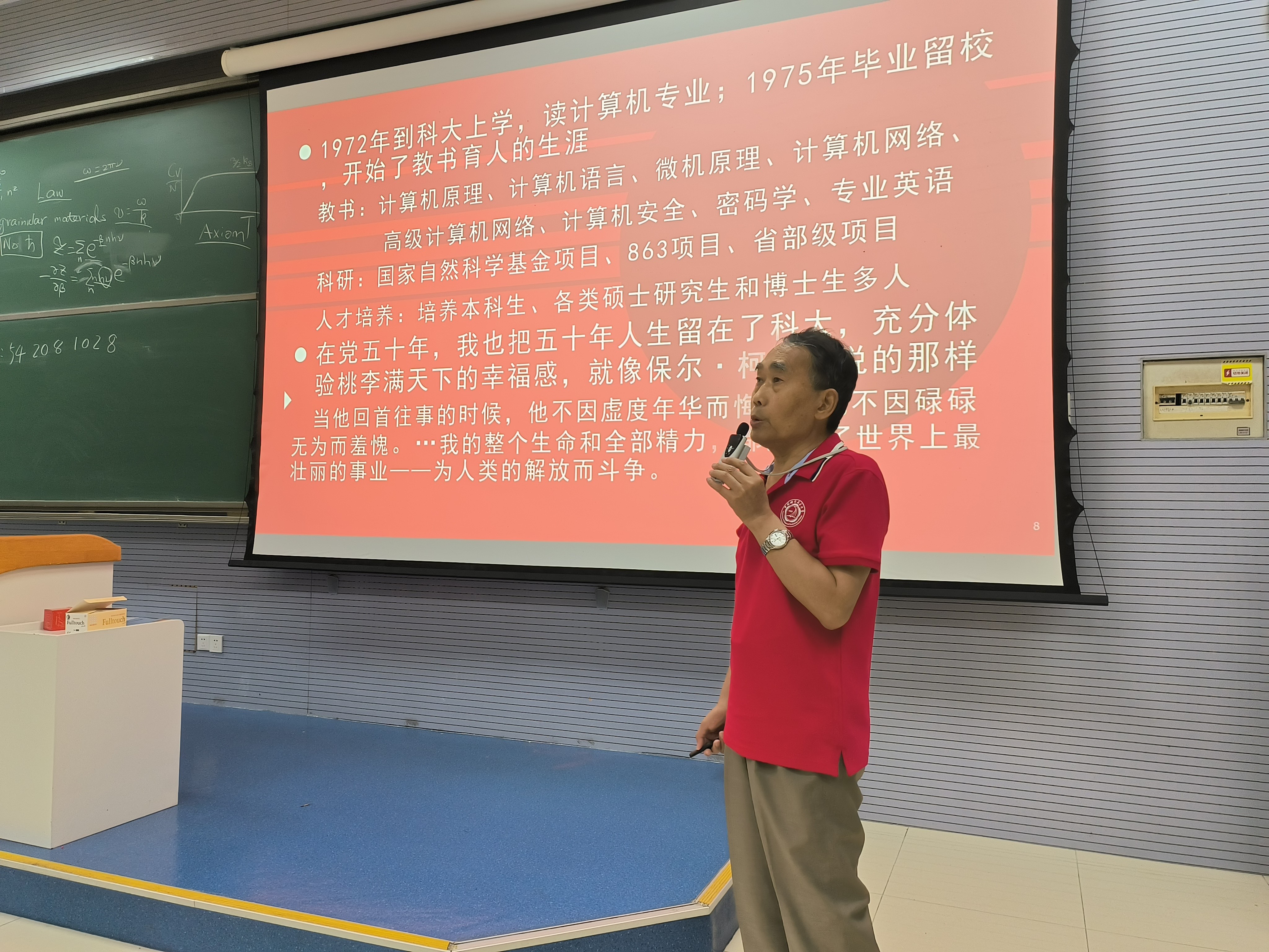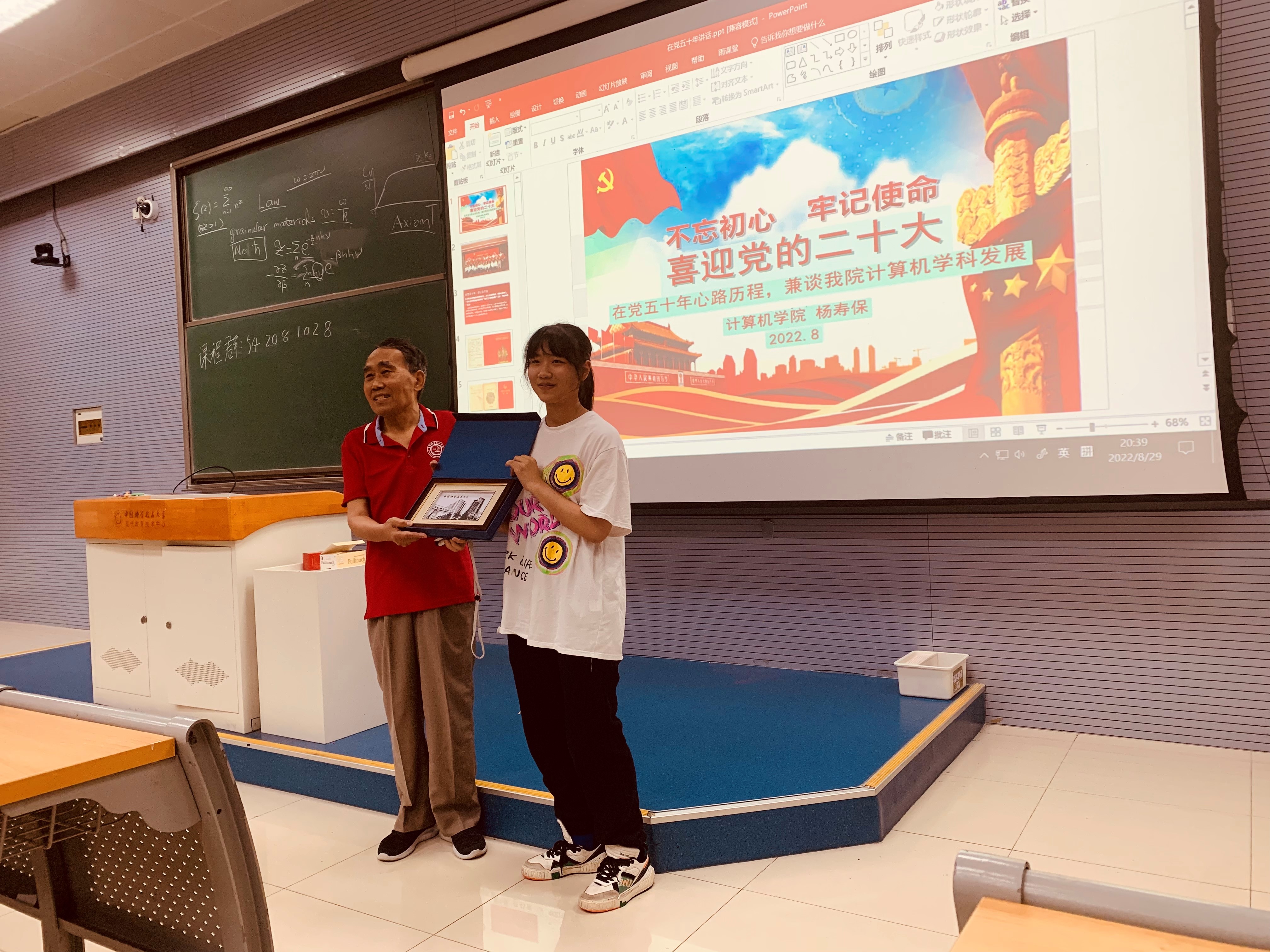 8月29日晚,学院邀请我校关工委委员、老科学家报告团成员杨寿保教授为全体本科新生作题为《不忘初心 牢记使命——在党五十年的心路历程,兼谈计算机学科的发展》的专题报告。活动由我院党委副书记宫晓梅主持。