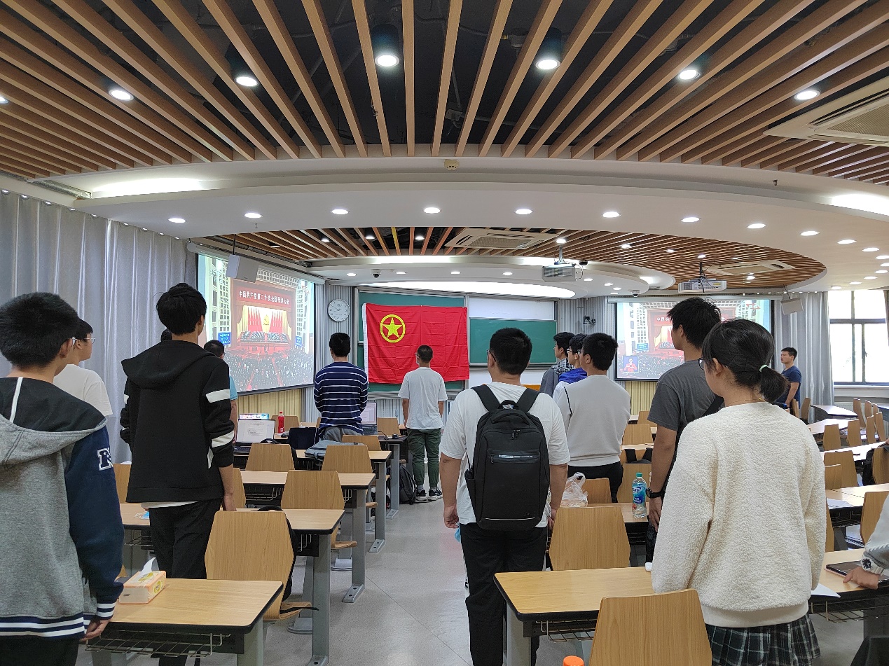 开幕式中奏唱国歌之际,同学们也都自觉起立,嘹亮的歌声响彻了整个教室。