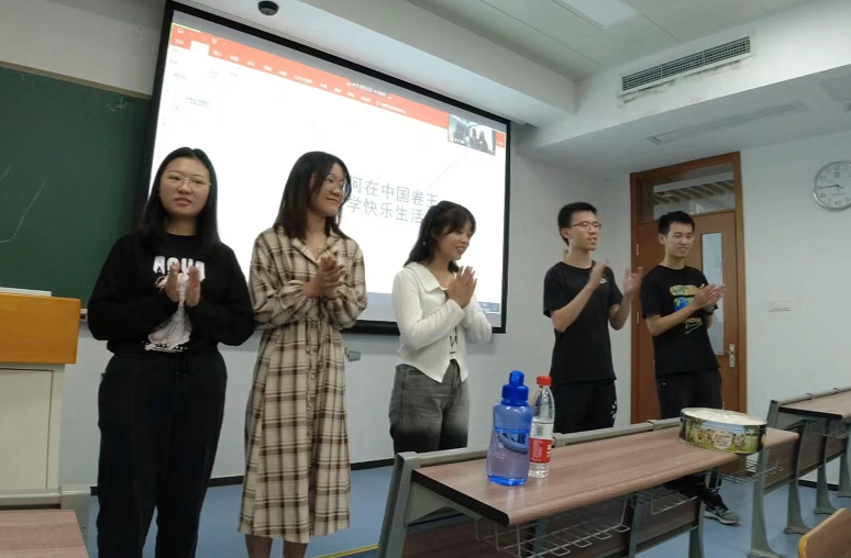 最后,五位学长学姐一起站上讲台,接受在场和线上同学们的提问。现场问答过程中,学长学姐相互补充,耐心细心地给同学们逐一答疑解惑,受到同学们一致好评。