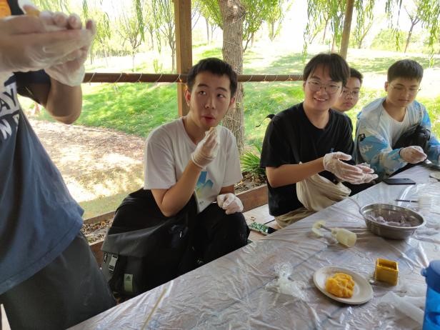 最后,工作人员组织同学们开展手工制作月饼。经过和面、填馅、脱模等工序,大家制作出了一个又一个可爱的小月饼。在感受传统文化的过程中体会团队合作和班级情谊,一个个精致美好的月饼象征着大家晶莹的心。