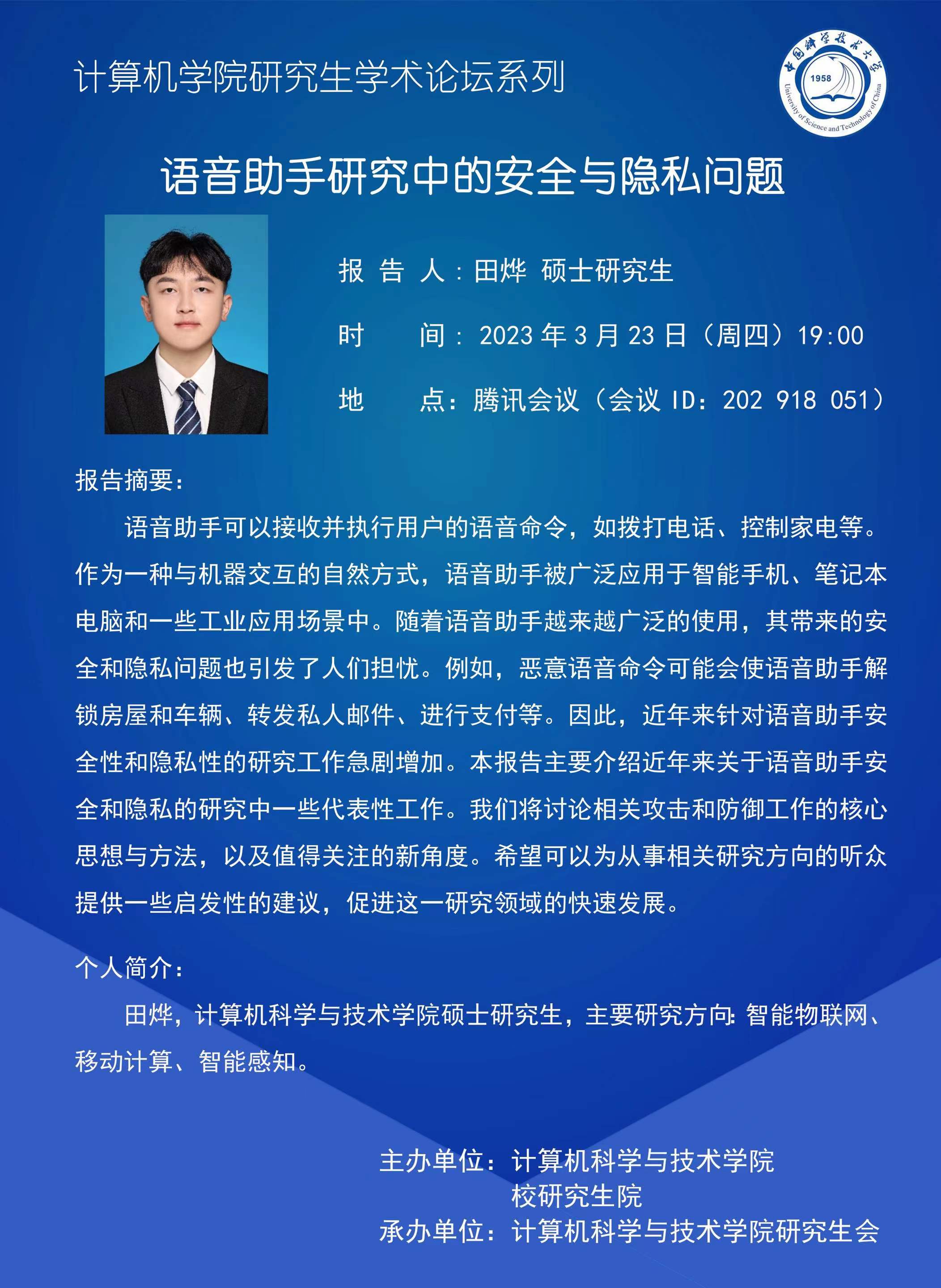 我院研究生学术论坛系列——硕士研究生田烨研究进展报告会