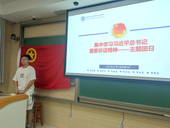 2023年9月25日晚七点,2022级本科3班团支部在2教2104开展了“集中学习习近平总书记重要讲话精神”主题团日活动。活动开始,团支书杨柄权同学首先简要说明了本次主题团日的活动内容,即解读学习习近平总书记在同团中央新一届领导班子成员集体谈话时的重要讲话精神。